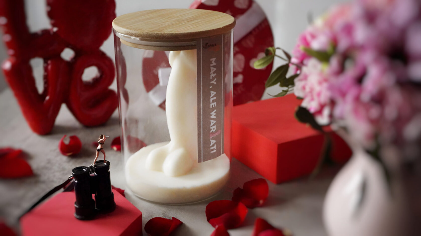 Zaprojektowaliśmy je przede wszystkim jako obiekt do podziwiania – figurę, która swoją formą cieszy oko, wywołuje uśmiech i lekkie rumieńce. Jeśli jednak zdecydujesz się stopić to woskowe arcydzieło, pamiętaj: szklany słoik z drewnianą pokrywką świetnie nadaje się do ponownego wykorzystania. Idealny na drobiazgi, sekrety albo kolejne niegrzeczne pomysły.